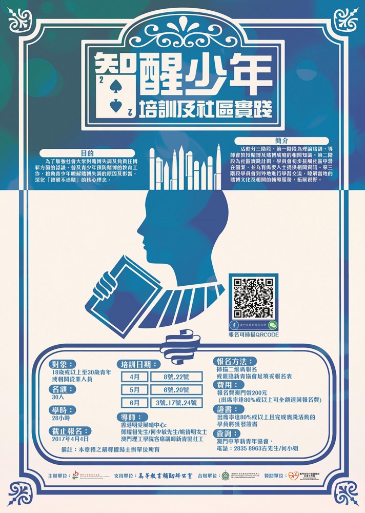 為普及預防賭博的教育工作,推動青少年瞭解賭博失調的原因及影響,澳門中華新青年協會將於4月至8月舉辦「智醒少年-培訓及社區實踐」系列活動。